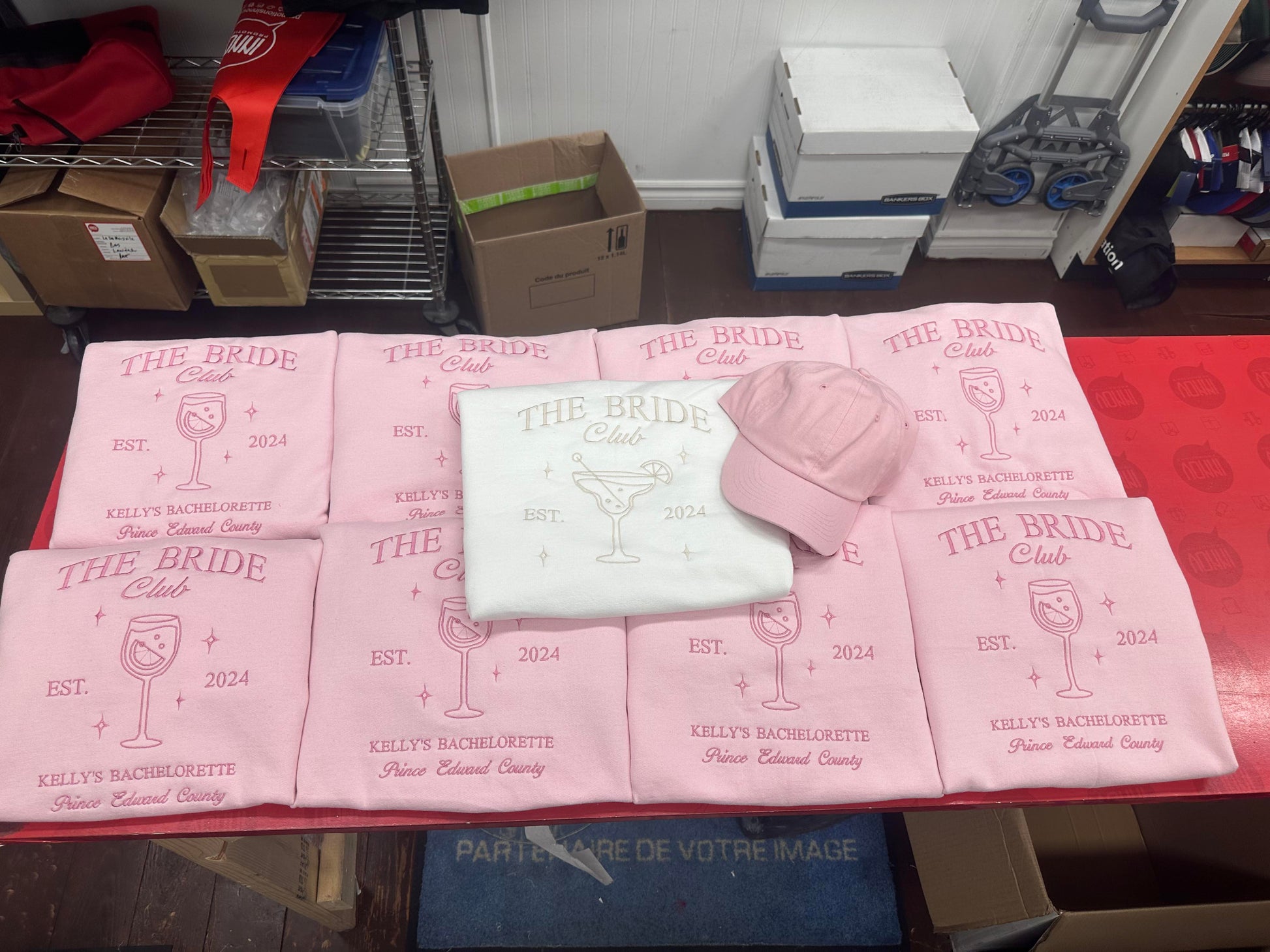 Text Box Exemple : Drink #1, THE BRIDE CLUB, Kelly's bachelorette, Est. 2025, Prince Edward County.