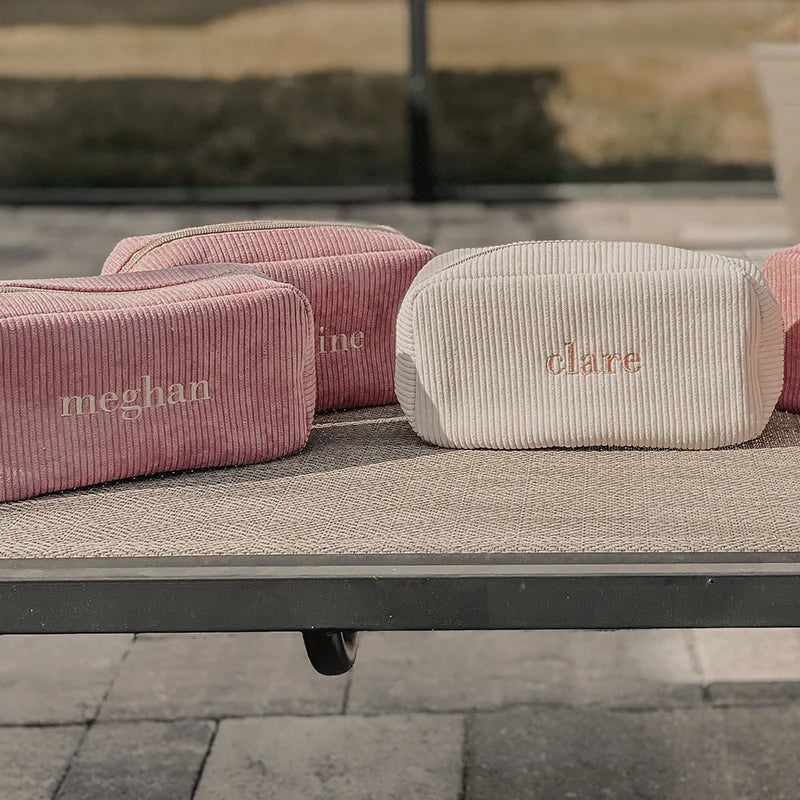 Embroidered Cosmetic Bag Corduroy Makeup Bag Custom Cosmetic Bag Bridesmaid Proposal Gifts Bachelorette Favor Team Bride Gift